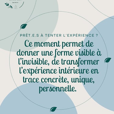 Une parenthèse pendant laquelle vous pourrez vous écouter, explorer vos pensées et ressentis intérieurs pour ensuite les déposer sur le support de votre choix.